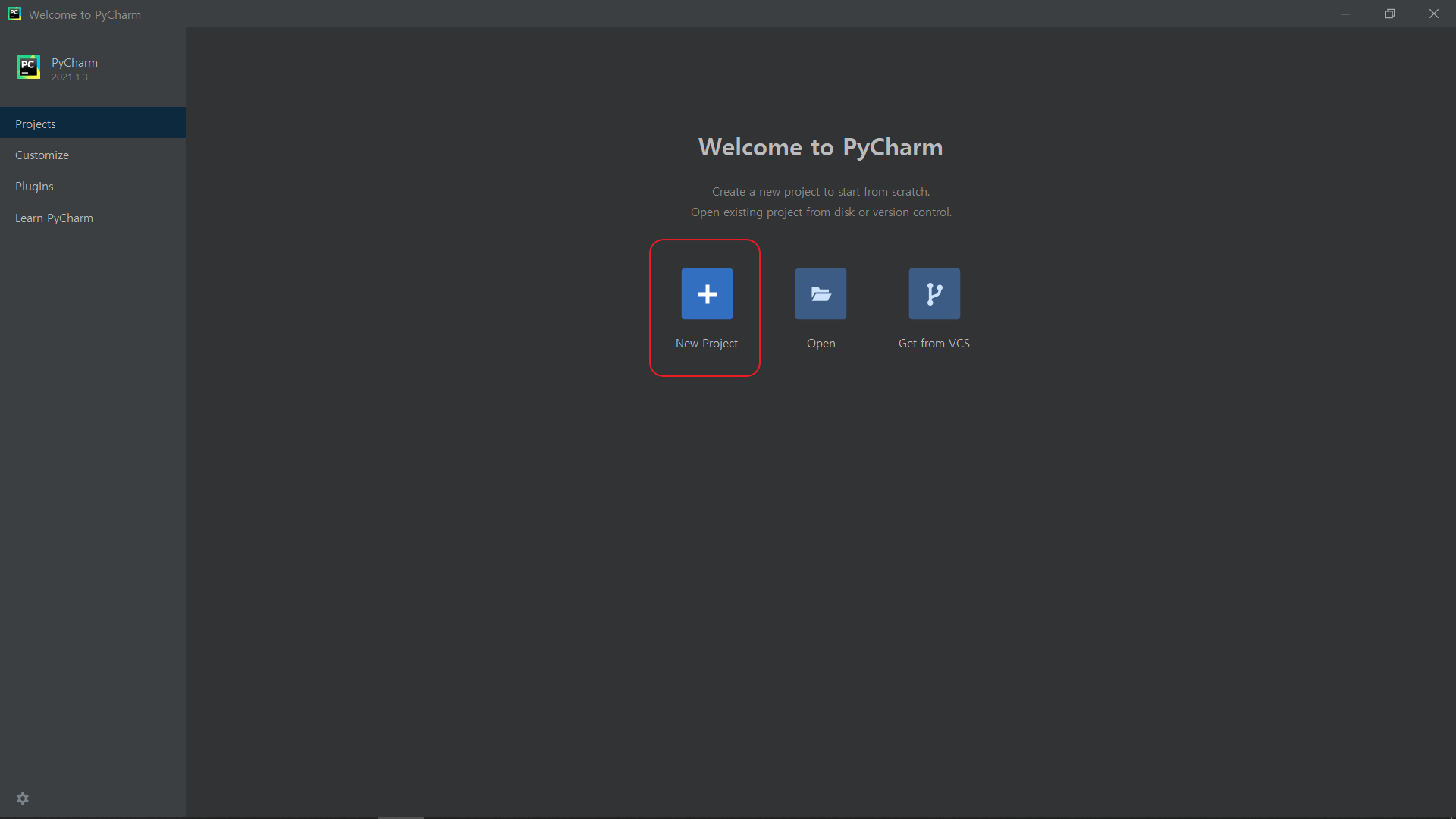 설치하고 첫 화면에서 New Project를 선택해줍니다.