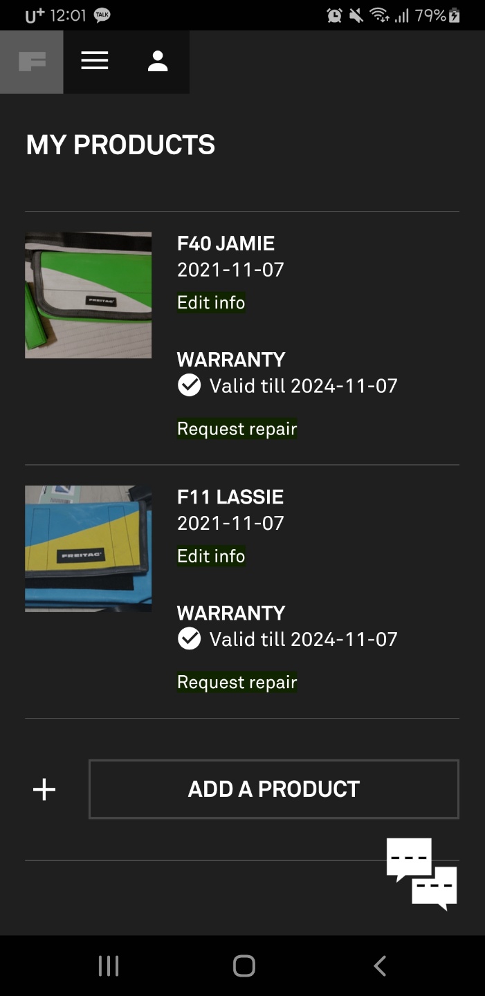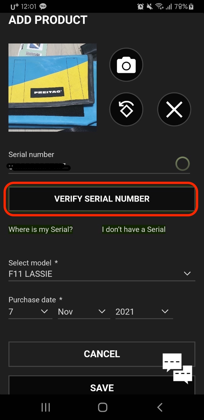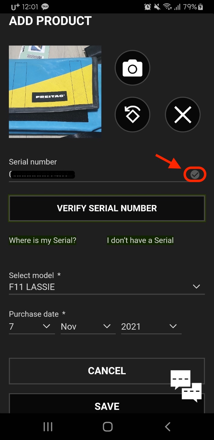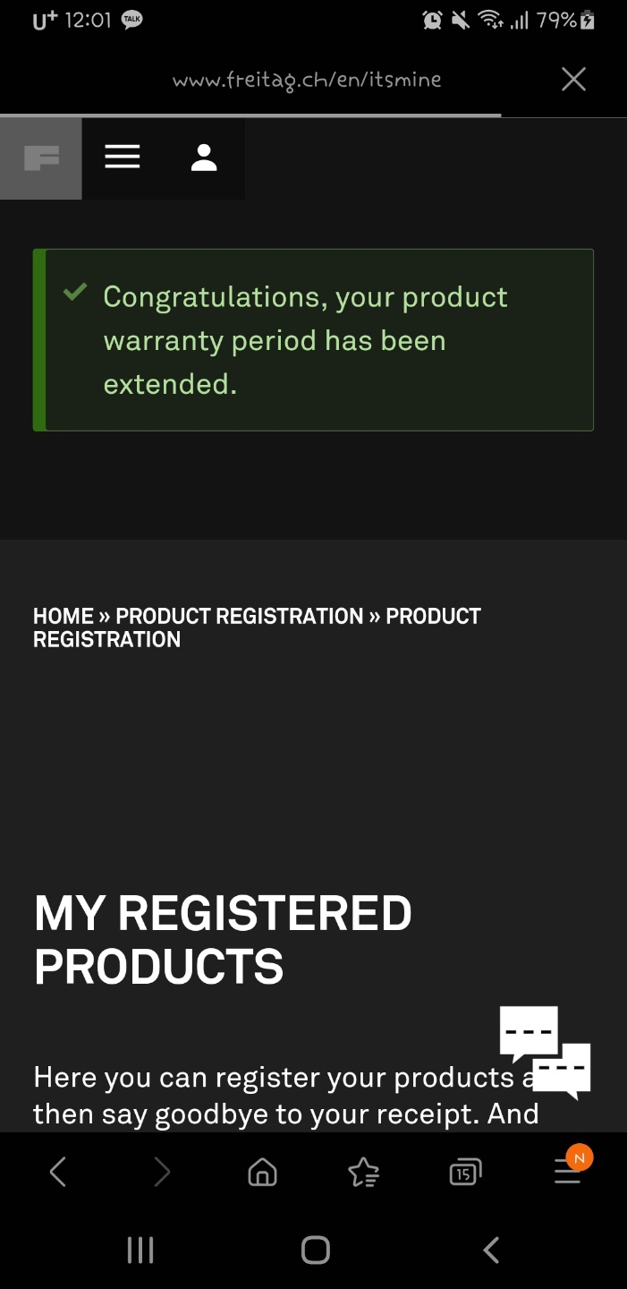 구매 한 가방을 사진 찍어서 홈페이지에 등록을 하면 원래 A/S 기간이 2년인데 3년으로 늘어난다고 알려주셨습니다. (그래서 찍은 사진)