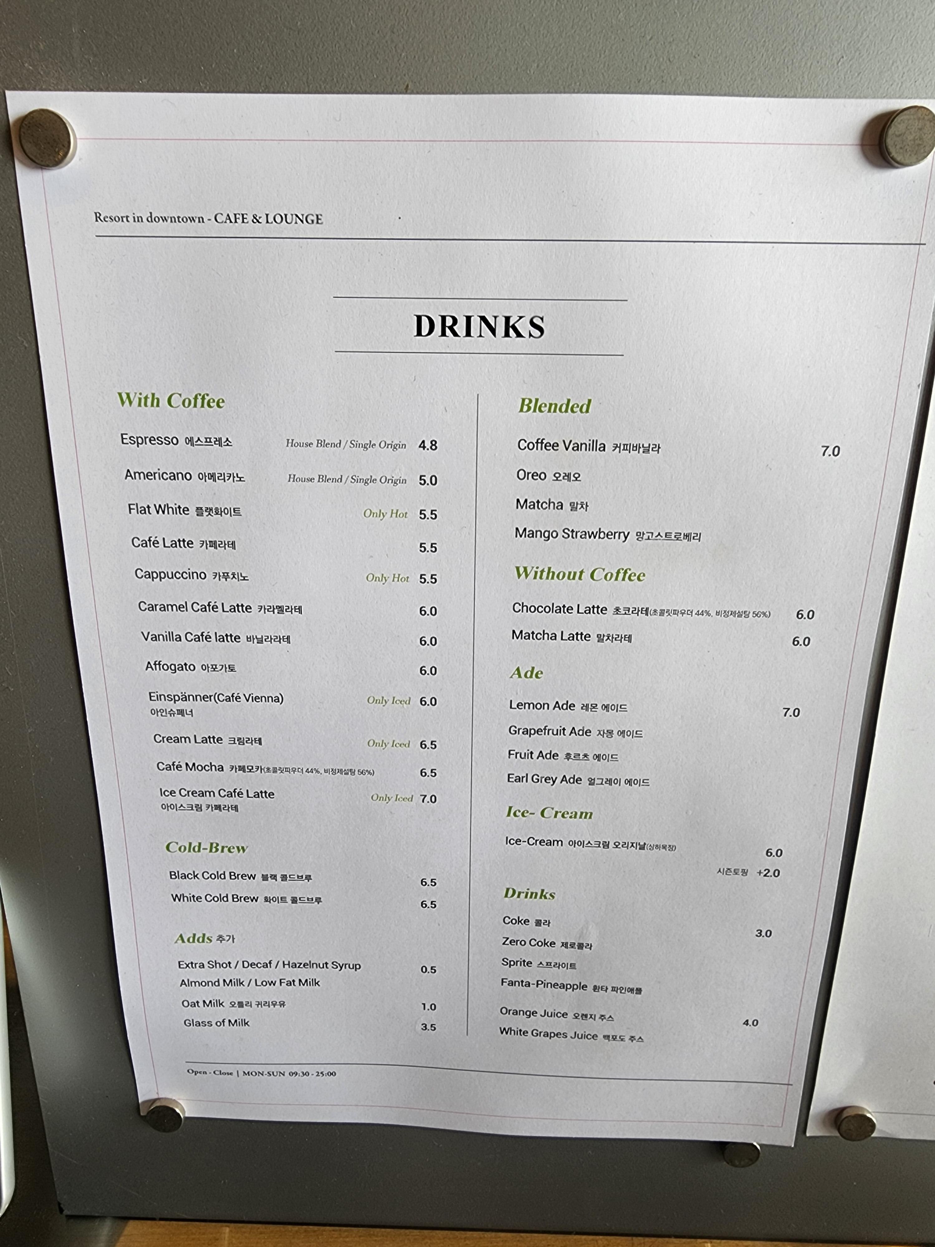 - 카페앤라운지(1층): 오전 9시 - 오후 10시